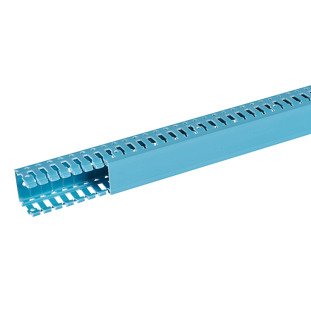Goulotte de câblage Segma BSI 60mmx60mm - Longueur 2m - Livrée avec couvercle - Perforations latérales d'un pas de 6mm à 6,5mm - Sécable à la main grâce aux pré découpes de fond et à l'aide de la pince coupante Segma - PVC Bleu