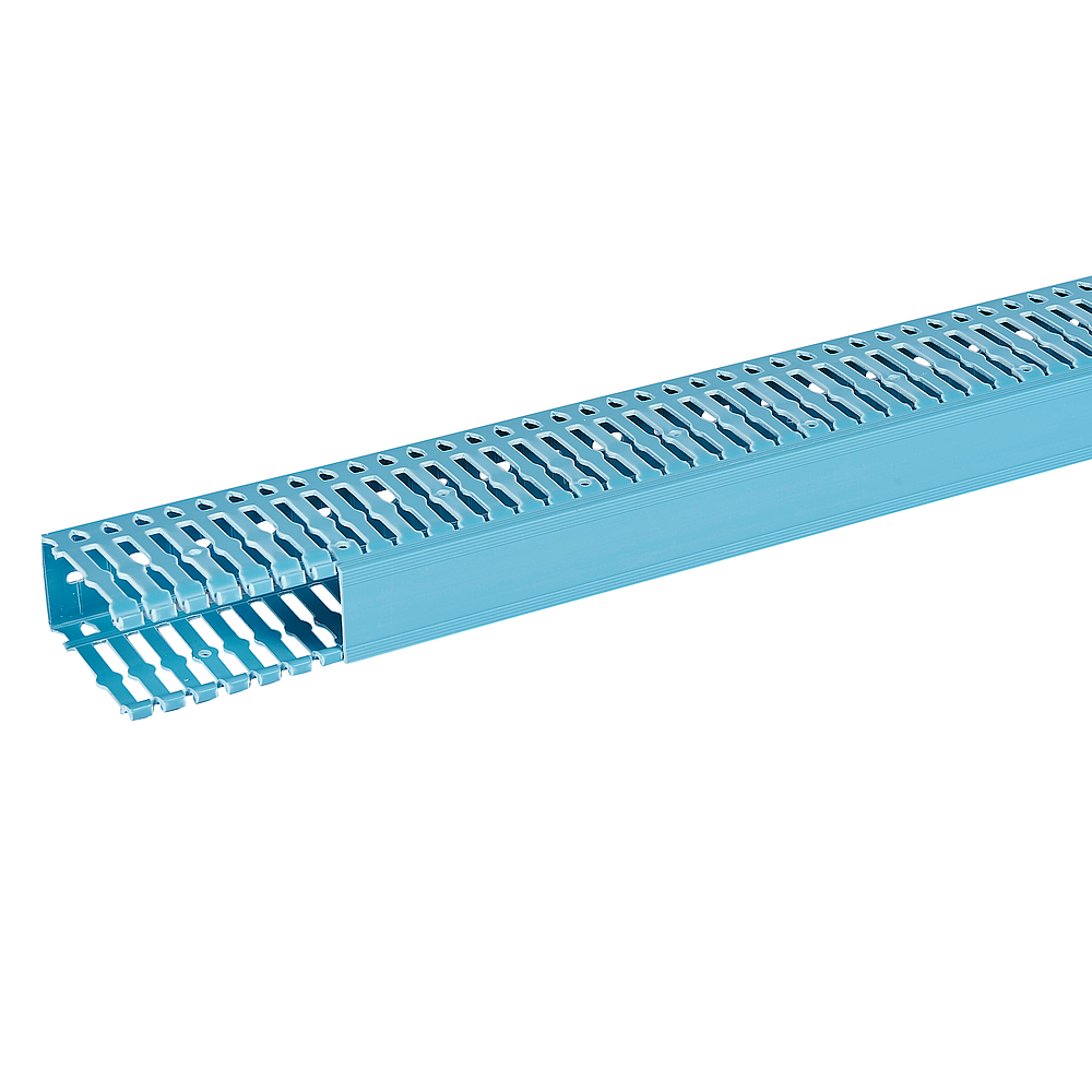 Goulotte de câblage Segma BSI 60mmx80mm - Longueur 2m - Livrée avec couvercle - Perforations latérales d'un pas de 6mm à 6,5mm - Sécable à la main grâce aux pré découpes de fond et à l'aide de la pince coupante Segma - PVC Bleu