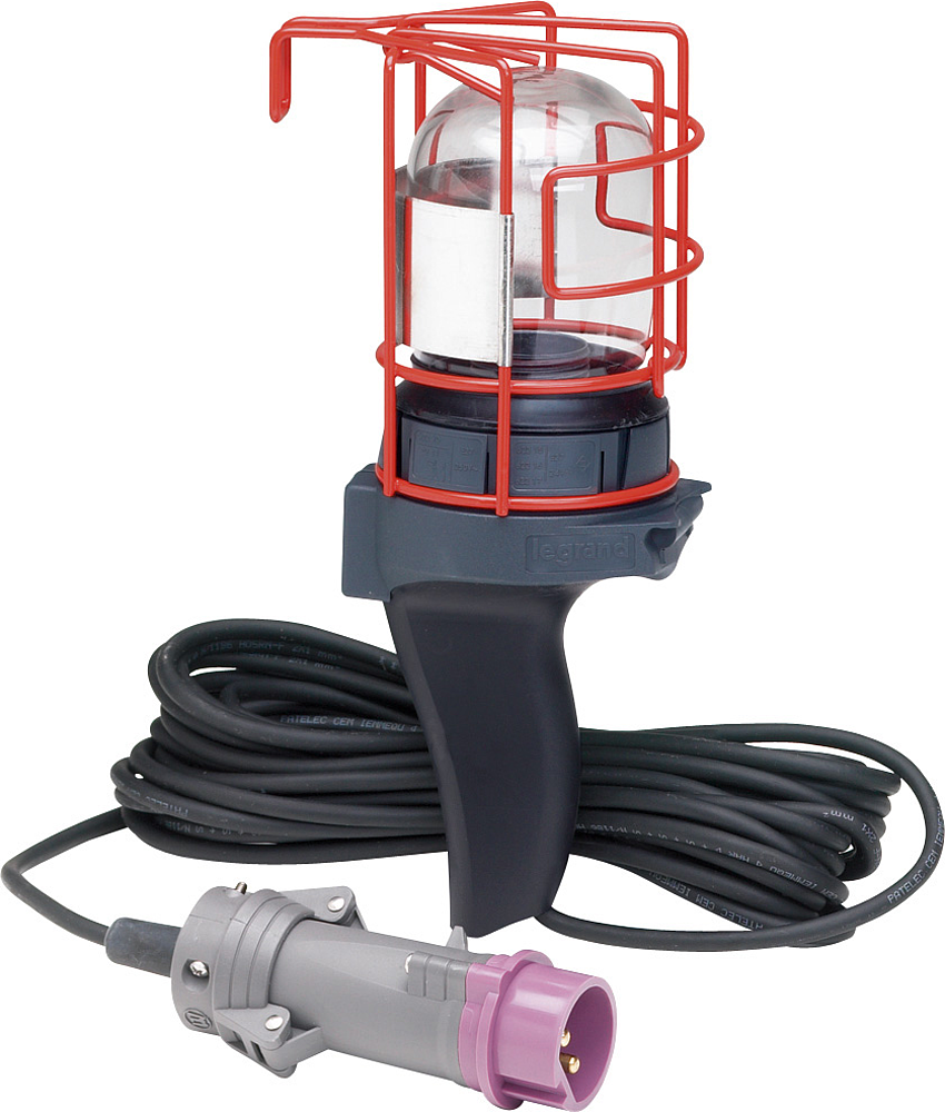 Baladeuse chantier 24V 60W maximum compacte IP20 avec fiche Hypra droite et cordon longueur 10m - classe III - panier rotatif en acier avec revêtement de protection et poignée caoutchoutée