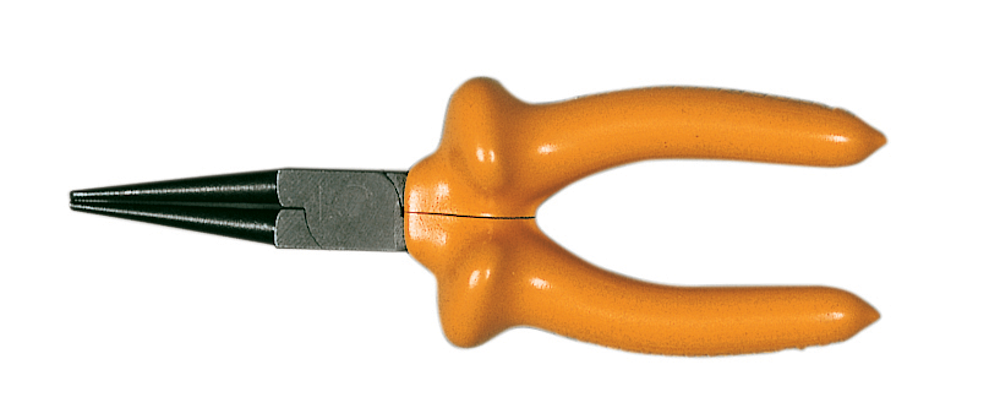 Pince à becs 1/2 ronds long 145mm, entrepassée, manches bimatière.